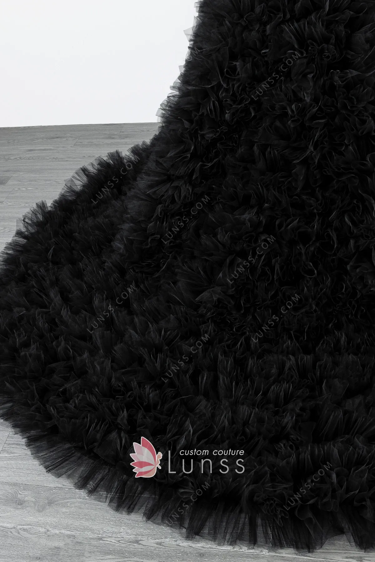 Black Unique Beading Lace Ruffled Tulle Prom Ball Gown (1Y481)