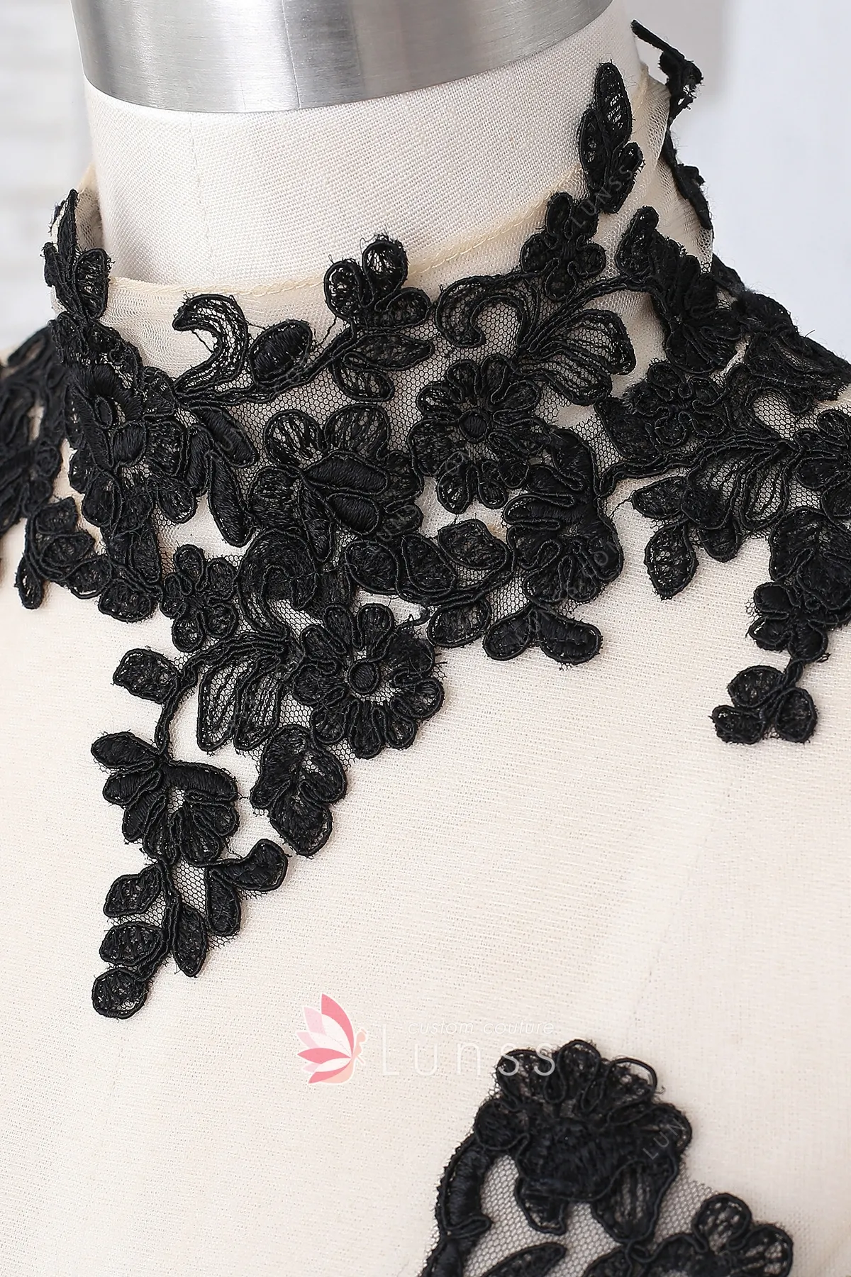 Black Illusion Sheer Lace 3D Rosette Mermaid Prom Dress (1X215)