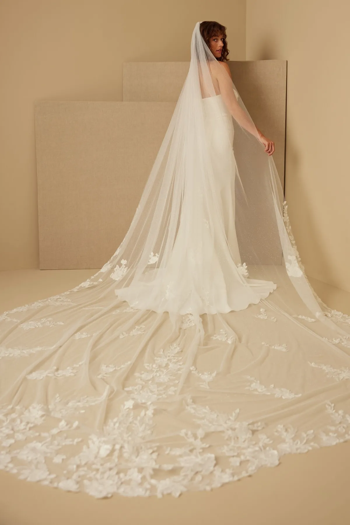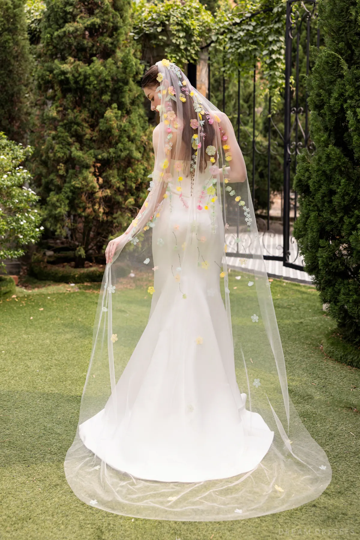 8, Cathedral Veil: The longest and most dramatic option, this veil trails several feet behind the bride, creating a stunning entrance. It’s best suited for grand, formal weddings and pairs beautifully with classic, elegant gowns.