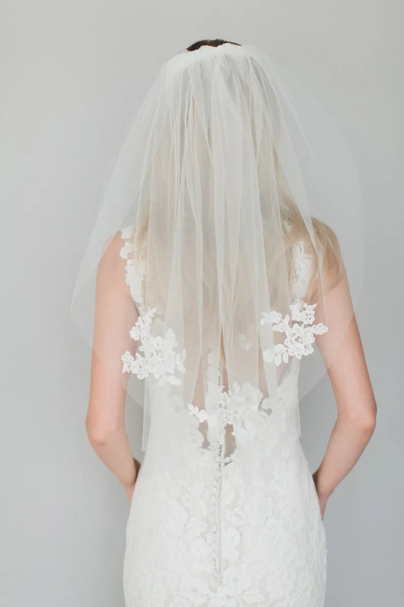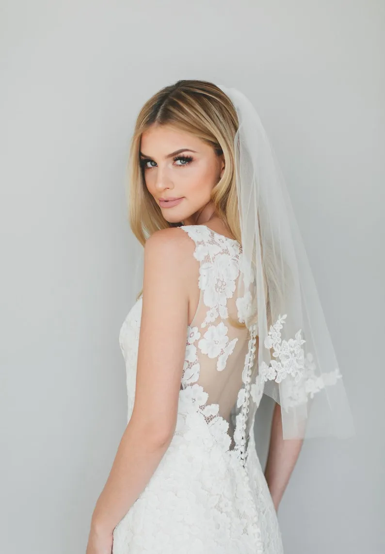 - Lace: A lace veil adds a romantic, vintage touch, especially if it matches the lace on your dress.