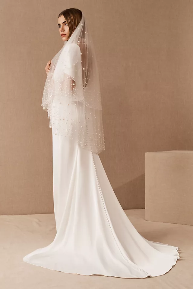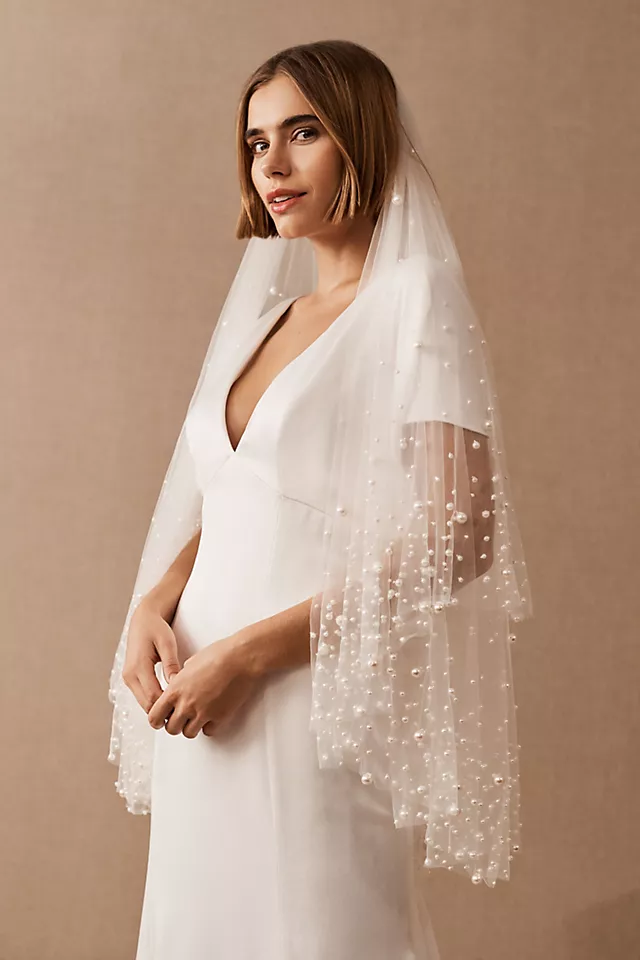 - Beading: Beaded veils catch the light and add sparkle, ideal for evening weddings or dresses with similar embellishments.