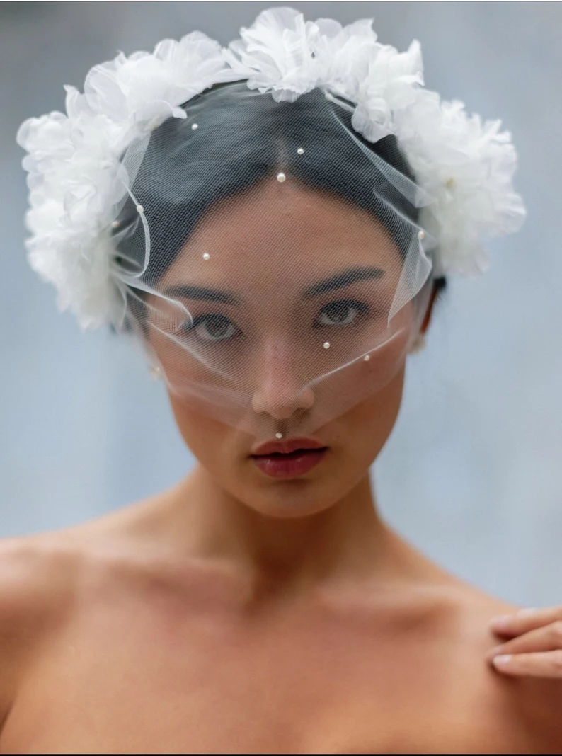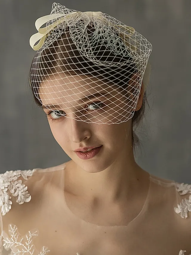 1, Birdcage Veil: A short veil that covers just the eyes or falls to the chin, ideal for vintage or retro-inspired brides. It's a perfect choice for short dresses or non-traditional bridal looks.