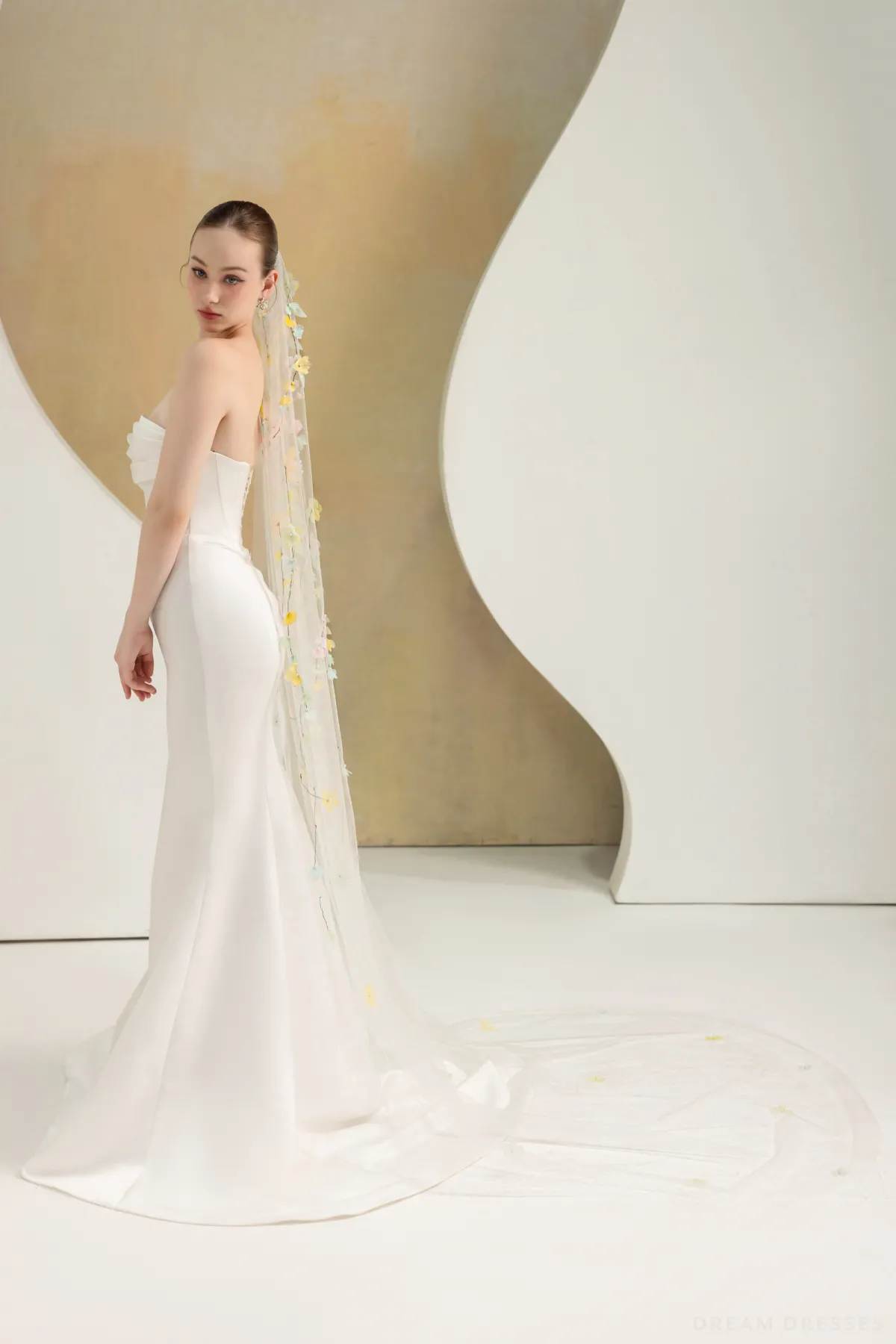 - Simple Dresses: A minimalist gown pairs well with a more elaborate veil featuring lace, embroidery, or beading. This can add a touch of glamour and elevate the simplicity of your dress.
