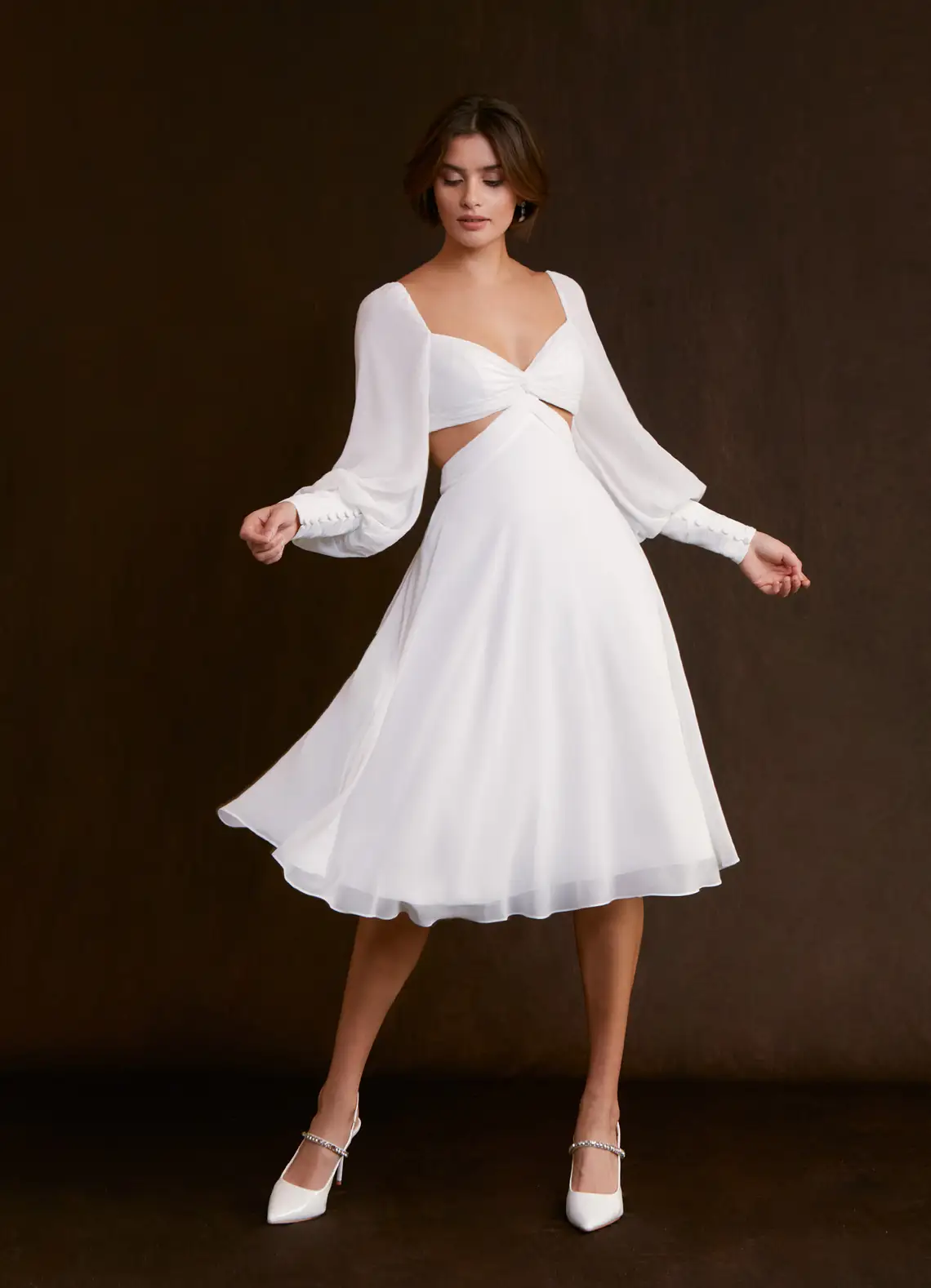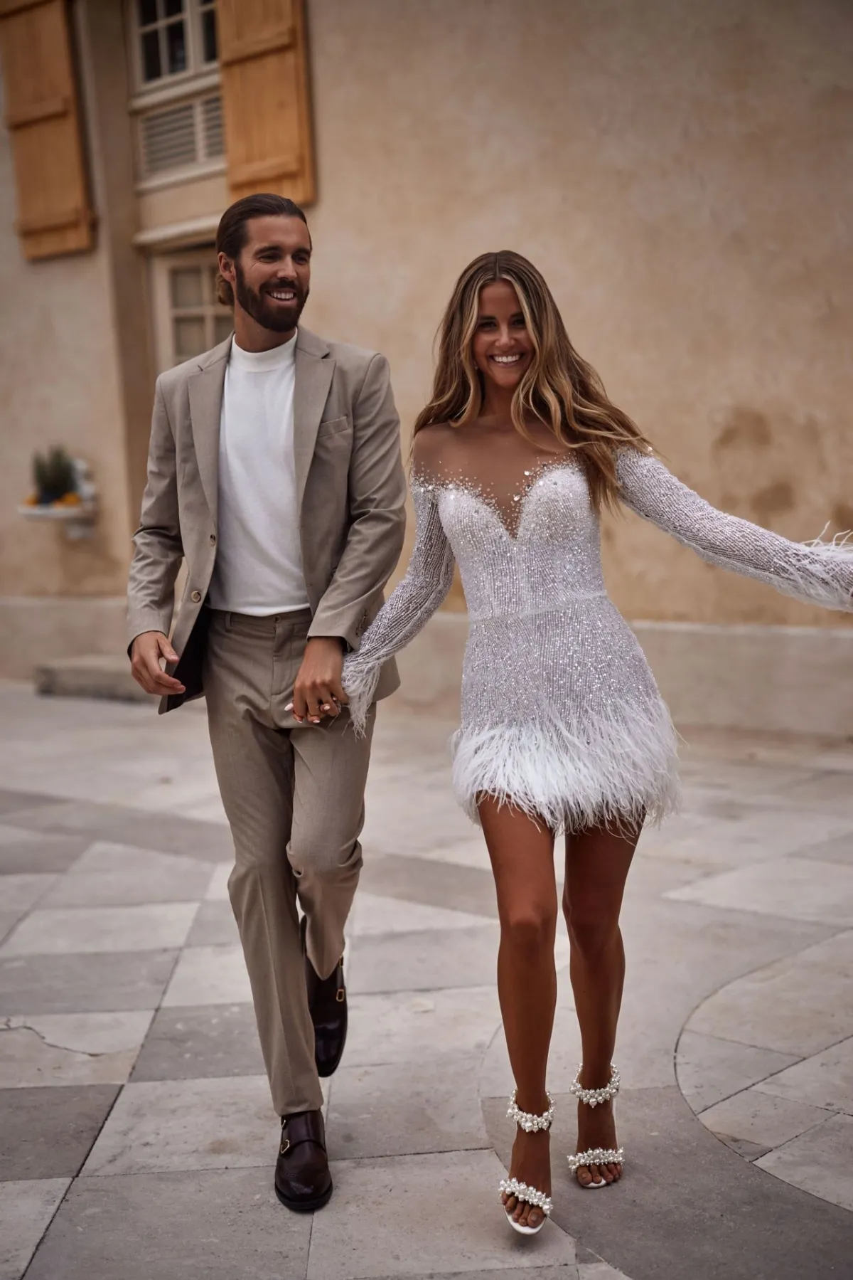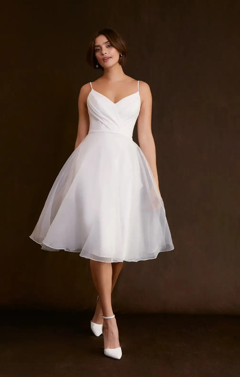 Many brides choose to wear a long gown for the ceremony and switch to a shorter dress for the reception or after-party. A short wedding dress allows you to move, dance, and celebrate without worrying about tripping over a train or dealing with a heavy gown during the festivities.