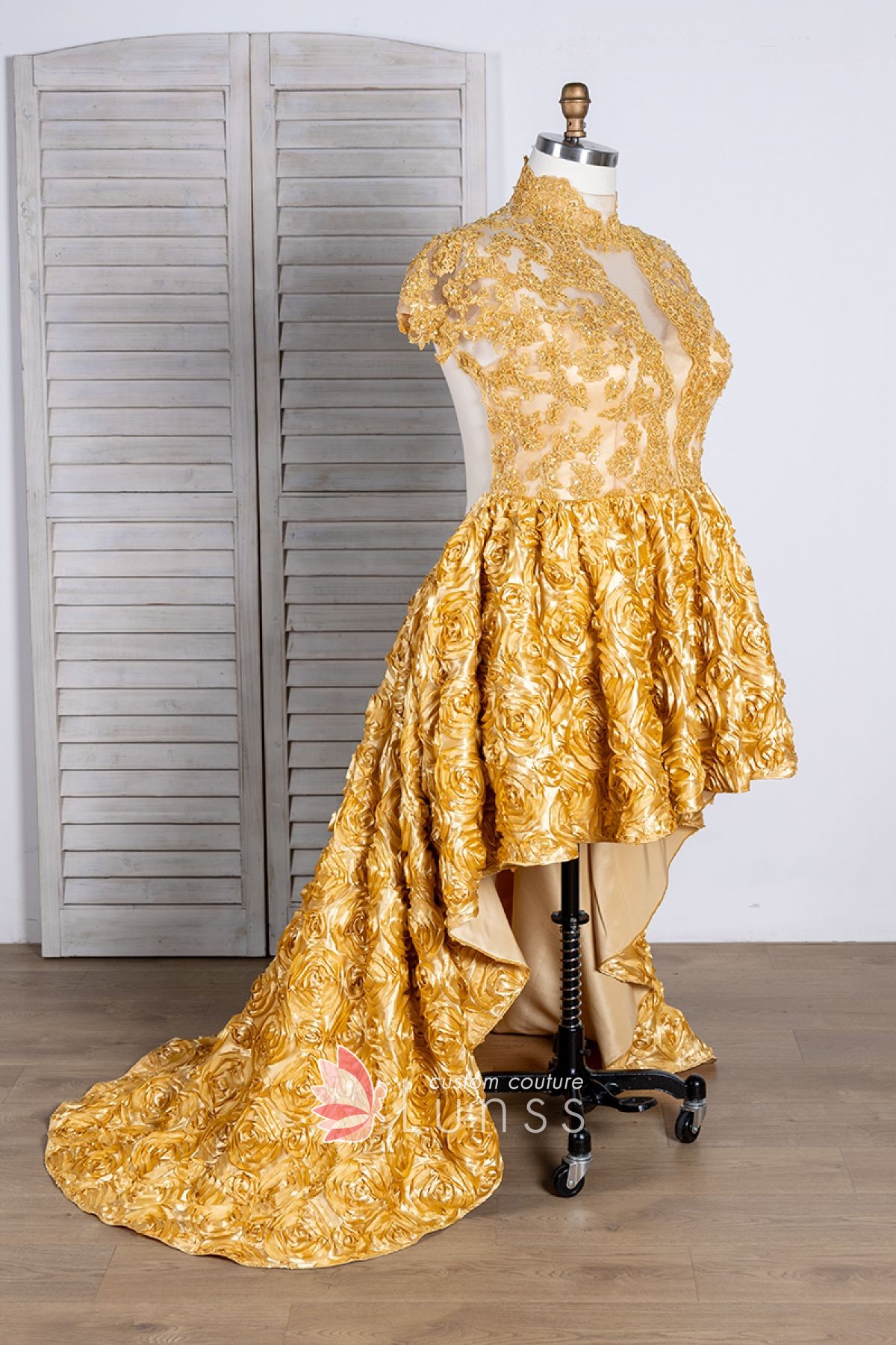 Yes, the dress can be made in all gold. Our sketch is charged $99 USD. It's a very simple design, we can customize this dress very well. It's OK if you don't choose this sketch service. Thank you!