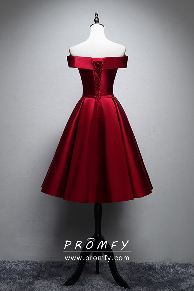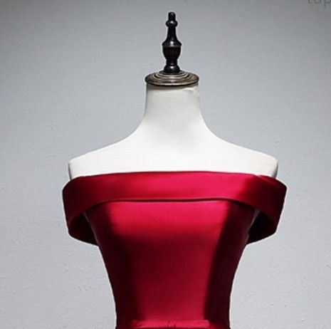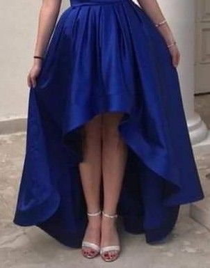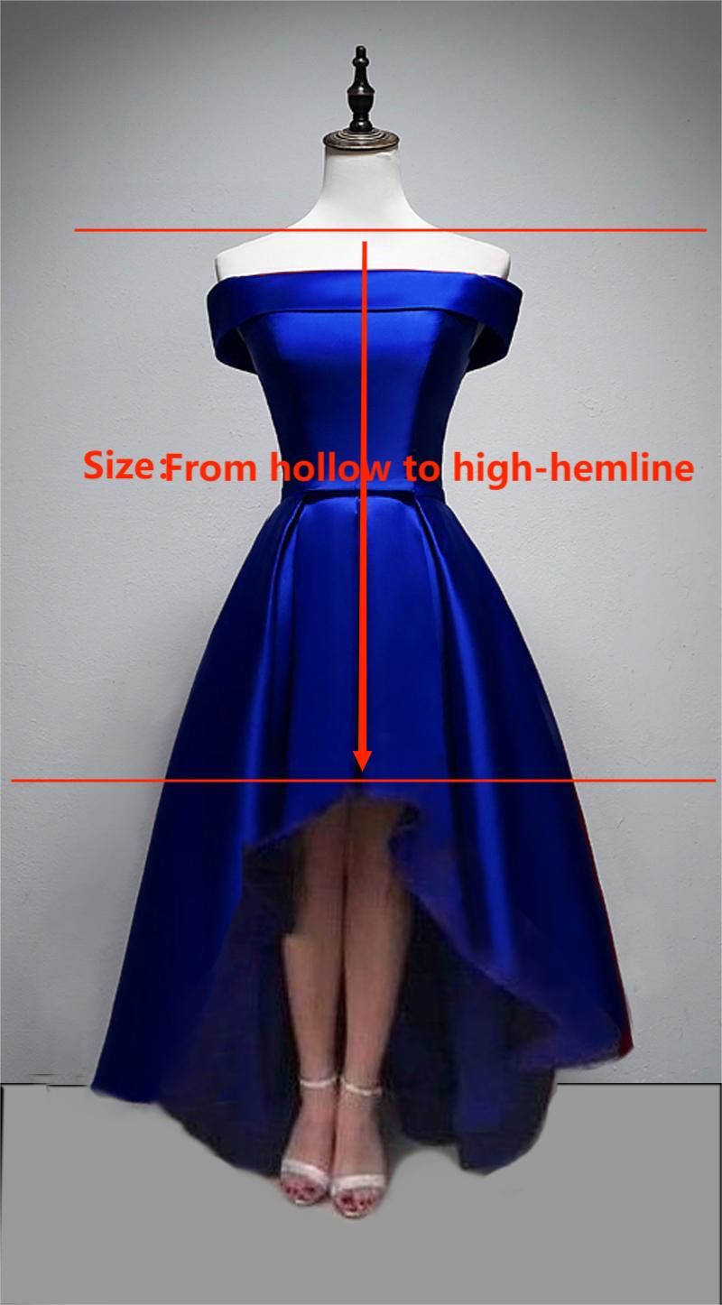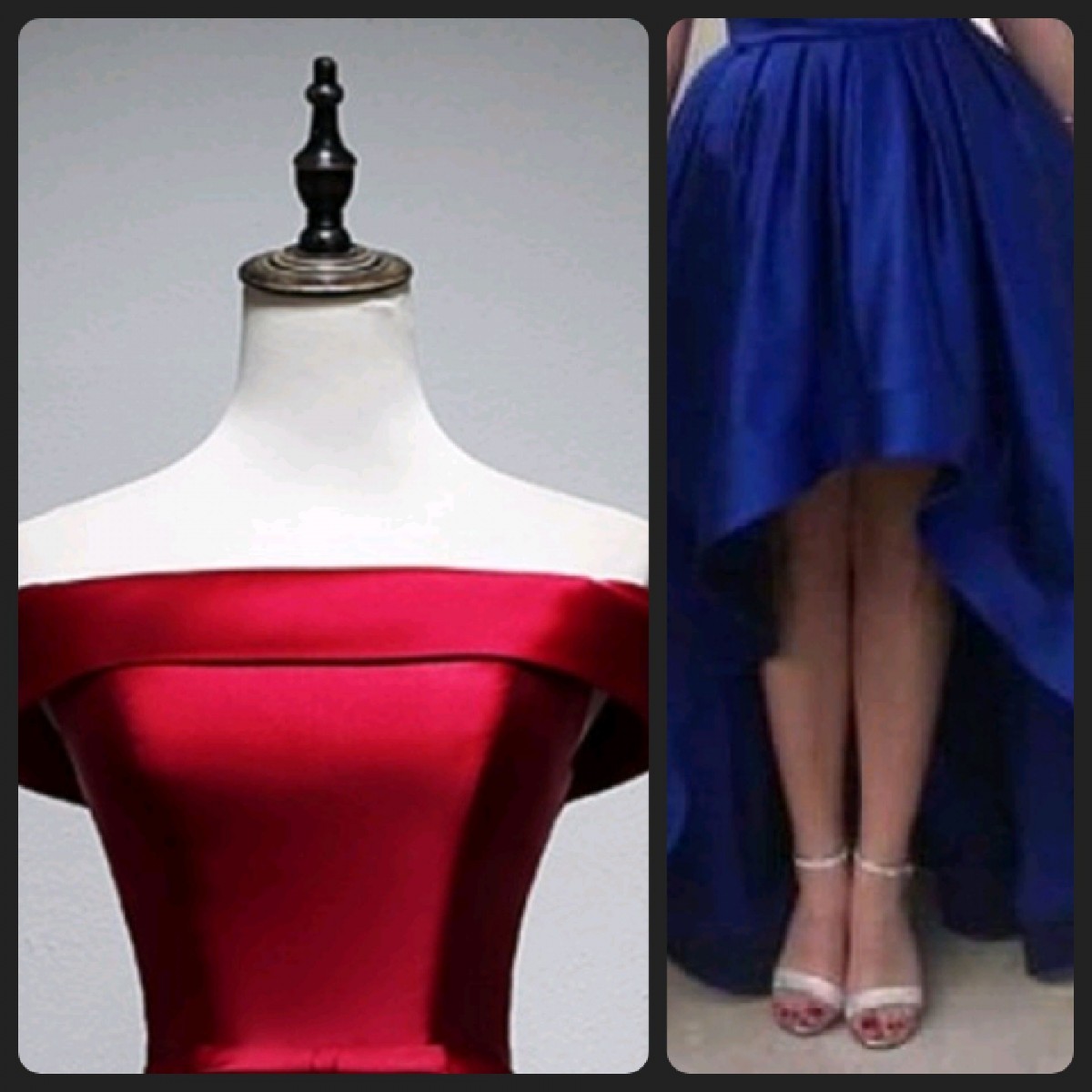 Satin Feel Royal Blue, Low and High, Off Shoulder Dress
