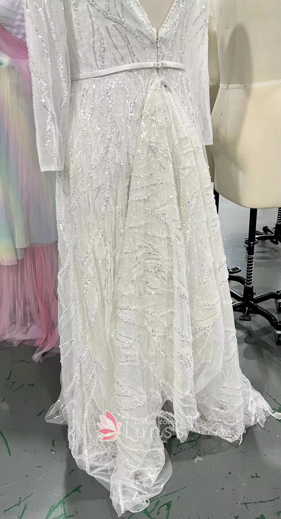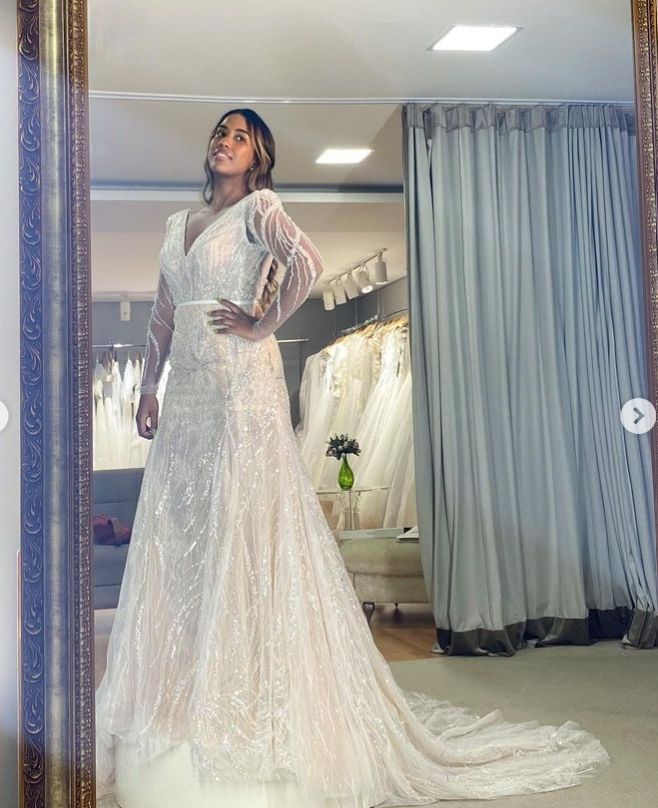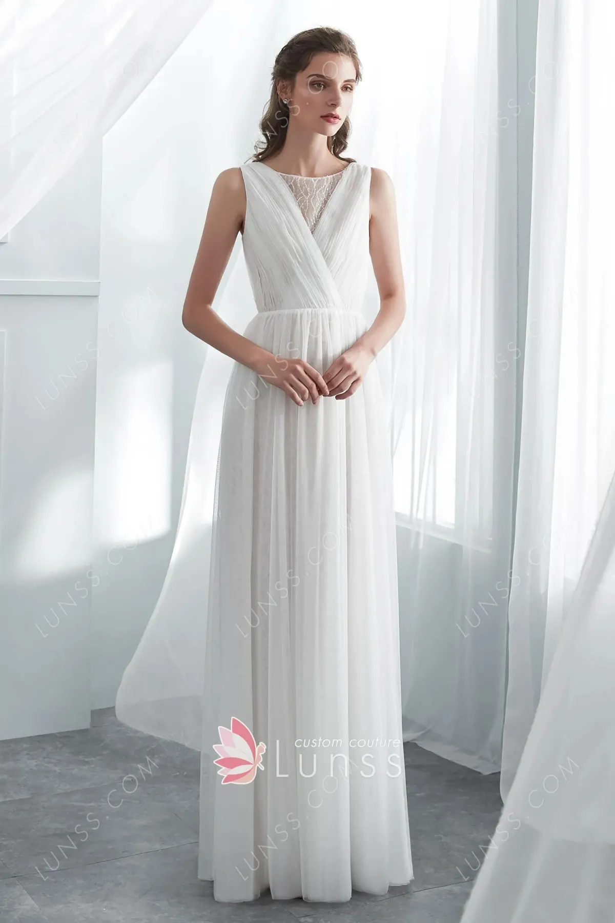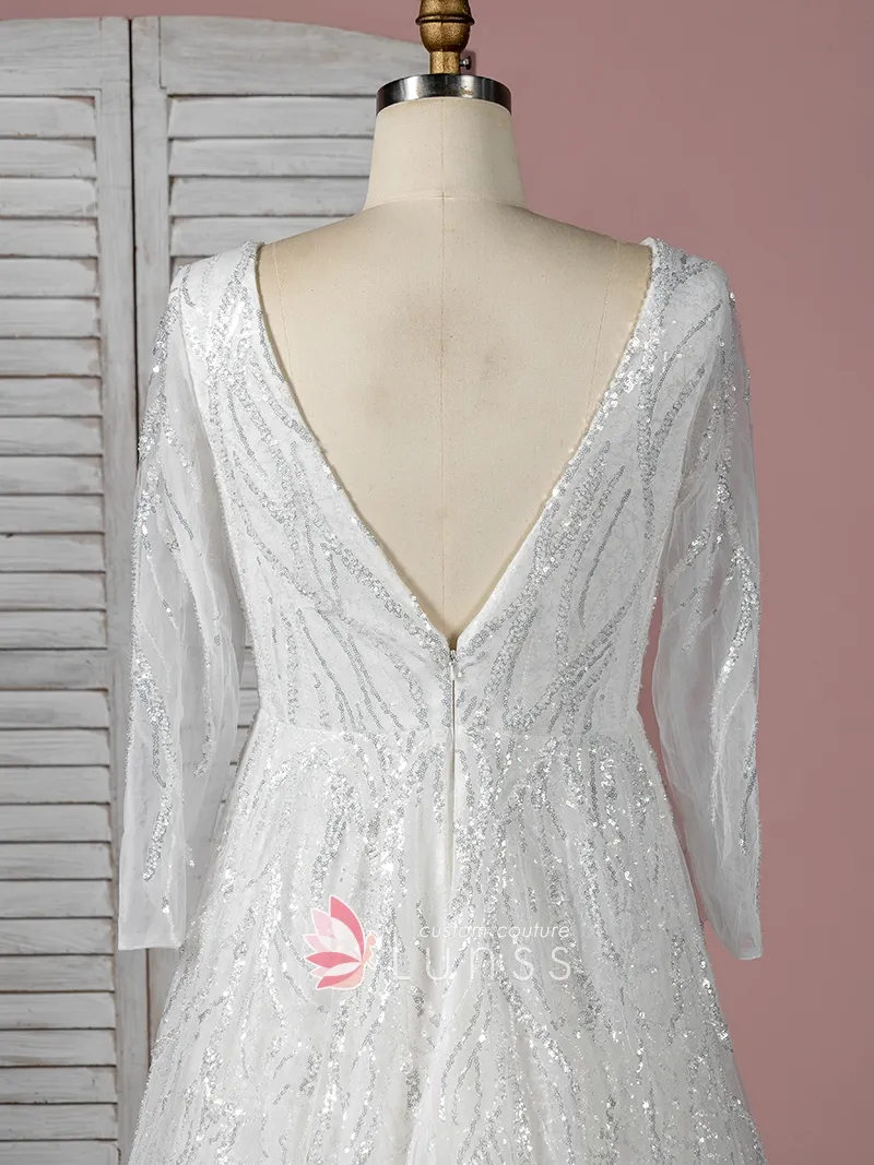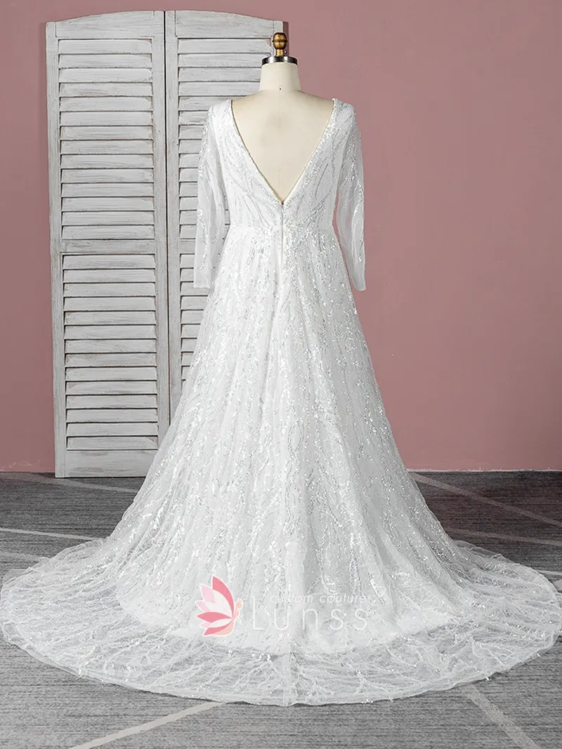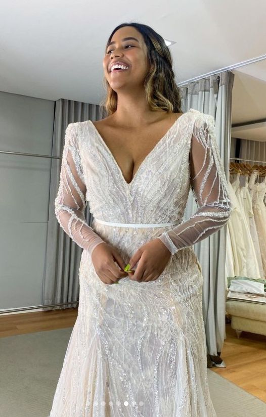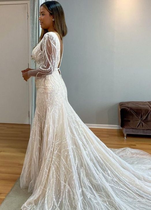 I know that I would like something elegant, but modern, special, love some sparkle, but not too busy; easy to wear and light (being summer). I believe an A line, with a V-neck, V back, suits me best and a delicate long or 3/4 sleeve. I am not a huge fan of lace therefore the fabric is very important for me.