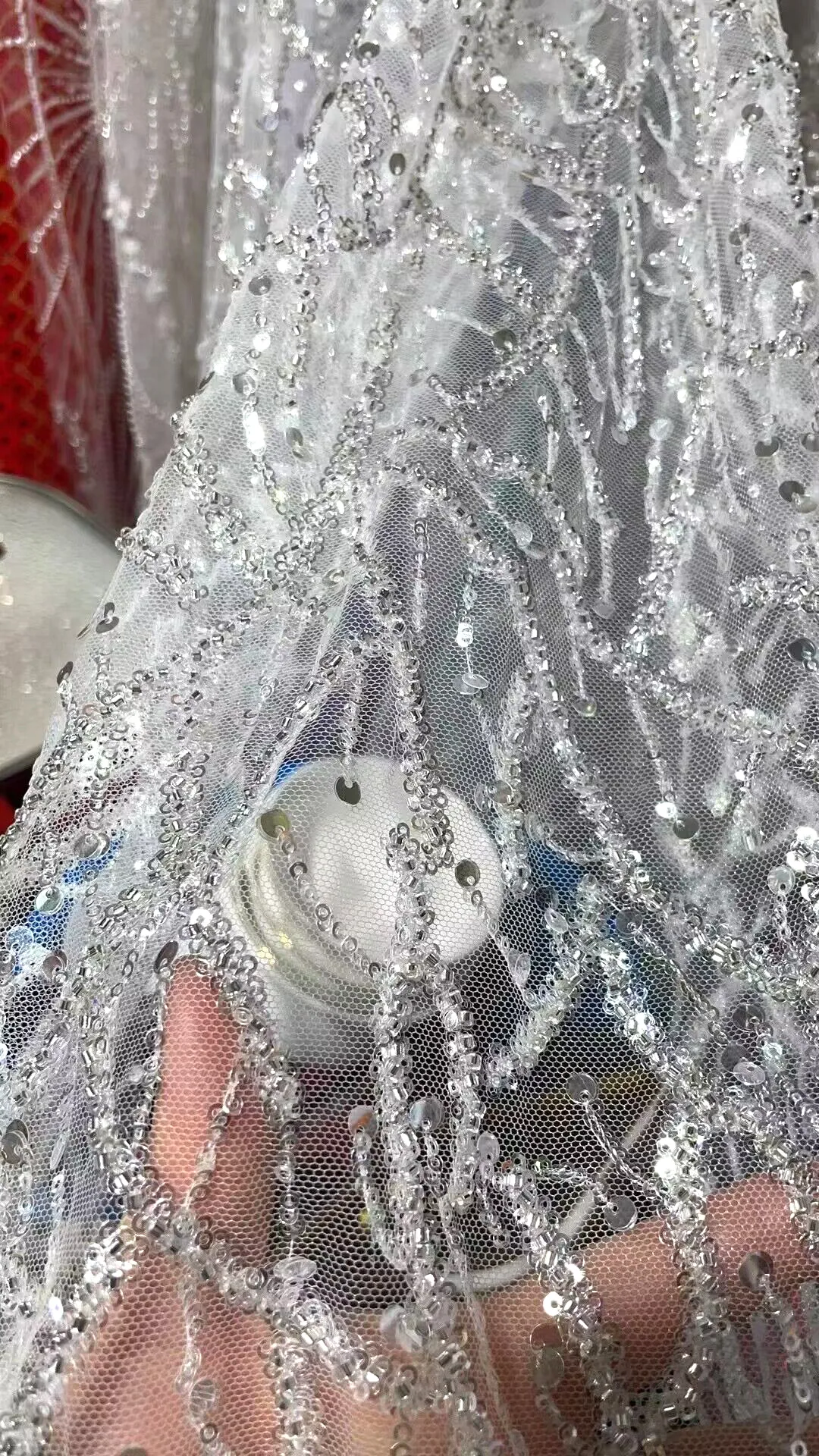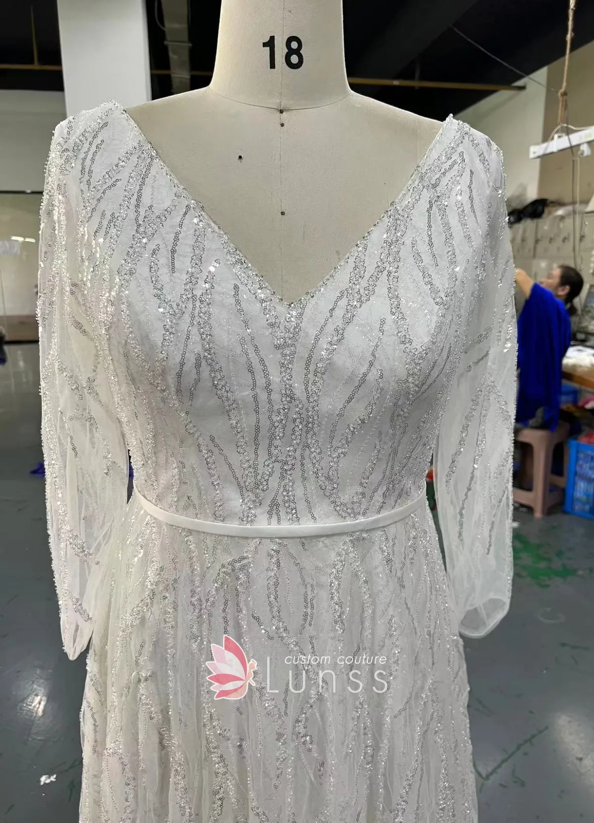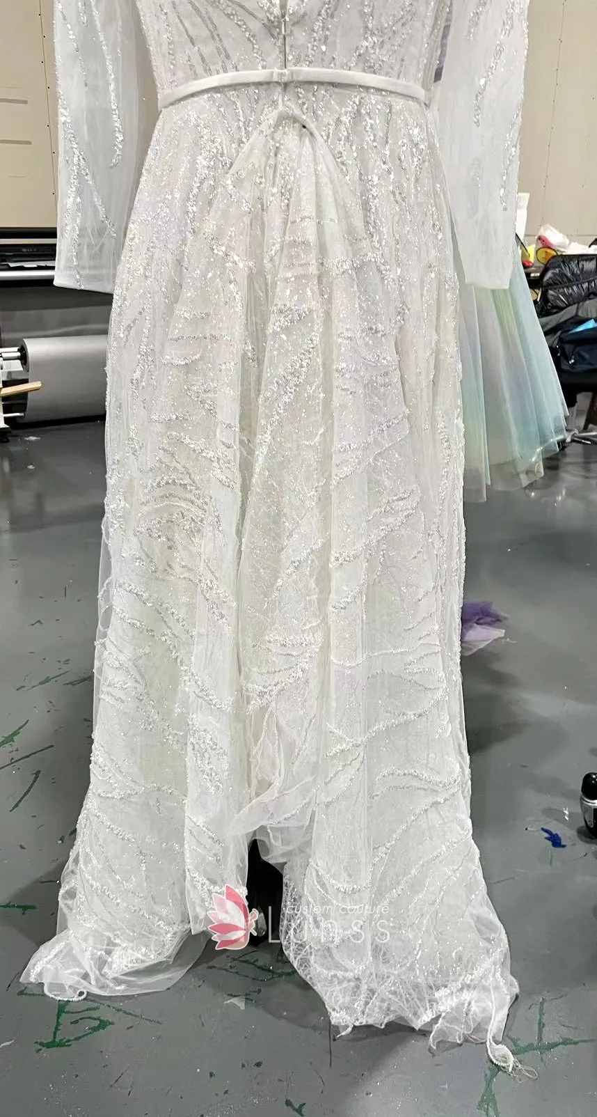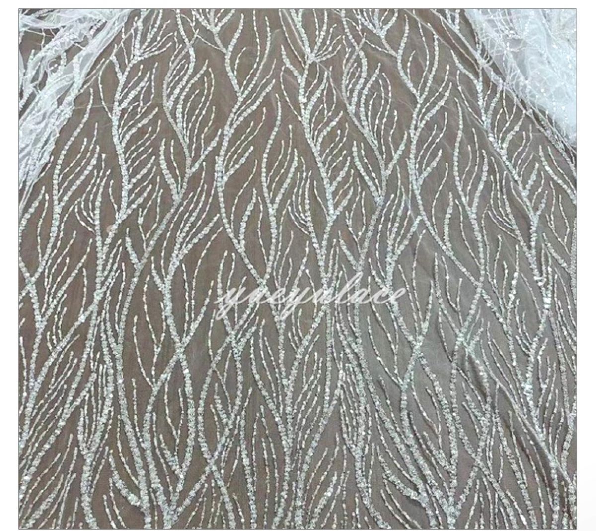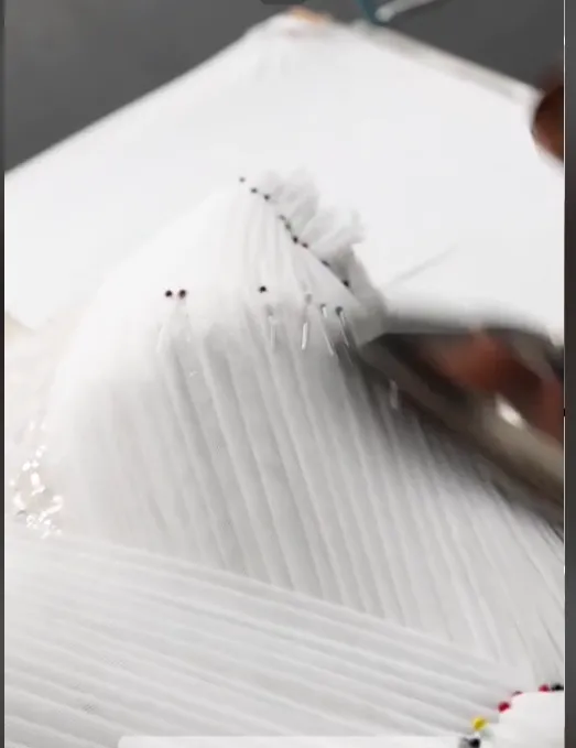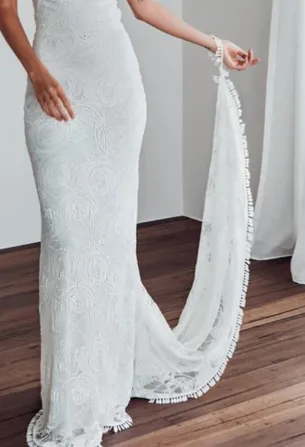 Could we do something like this? I know hers is mermaid, so converted in an A-line. Do you have a similar fabric?