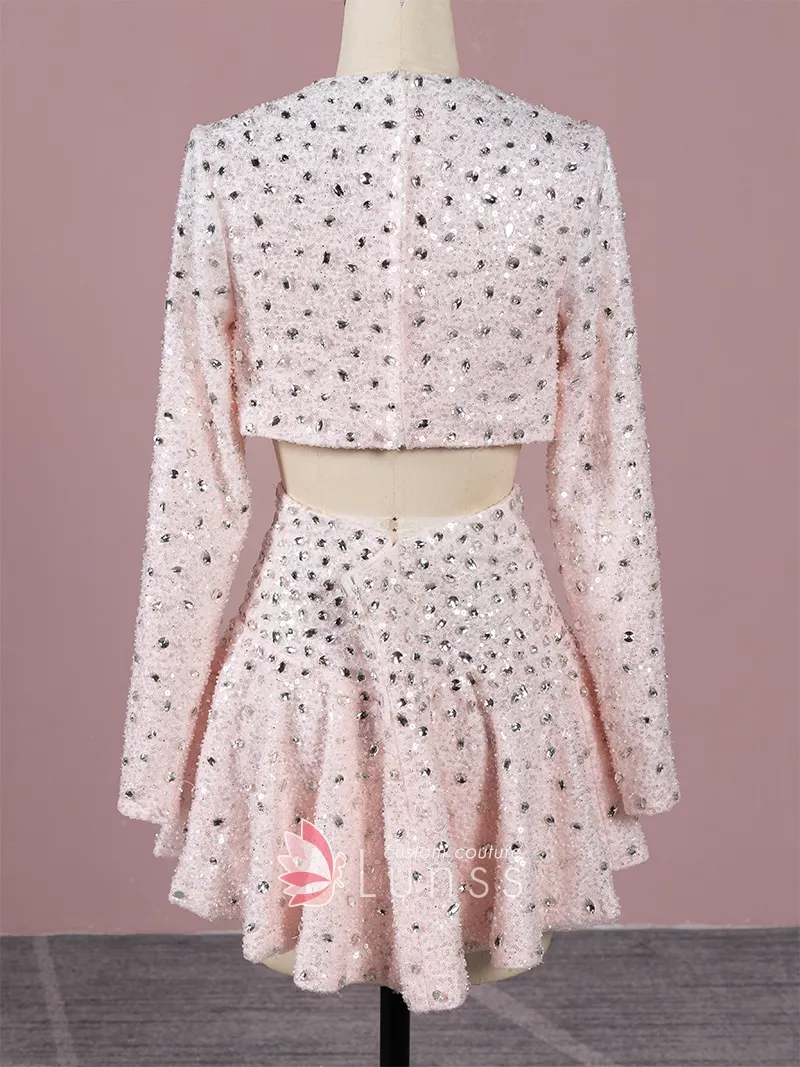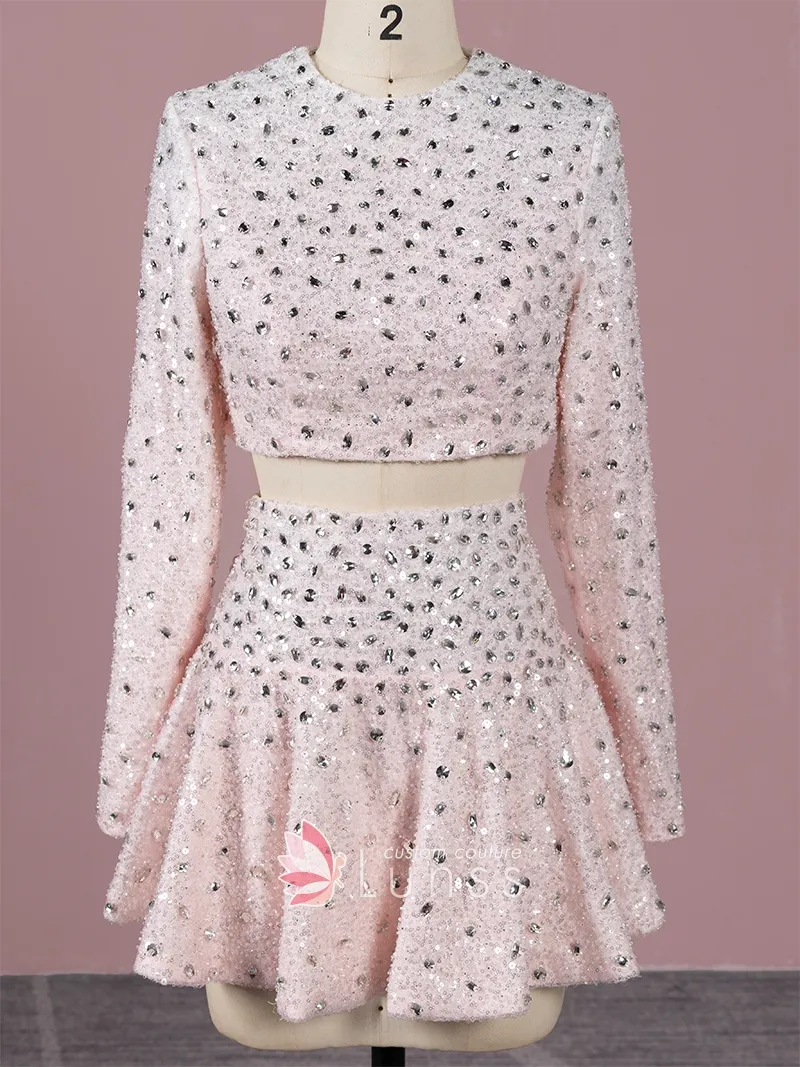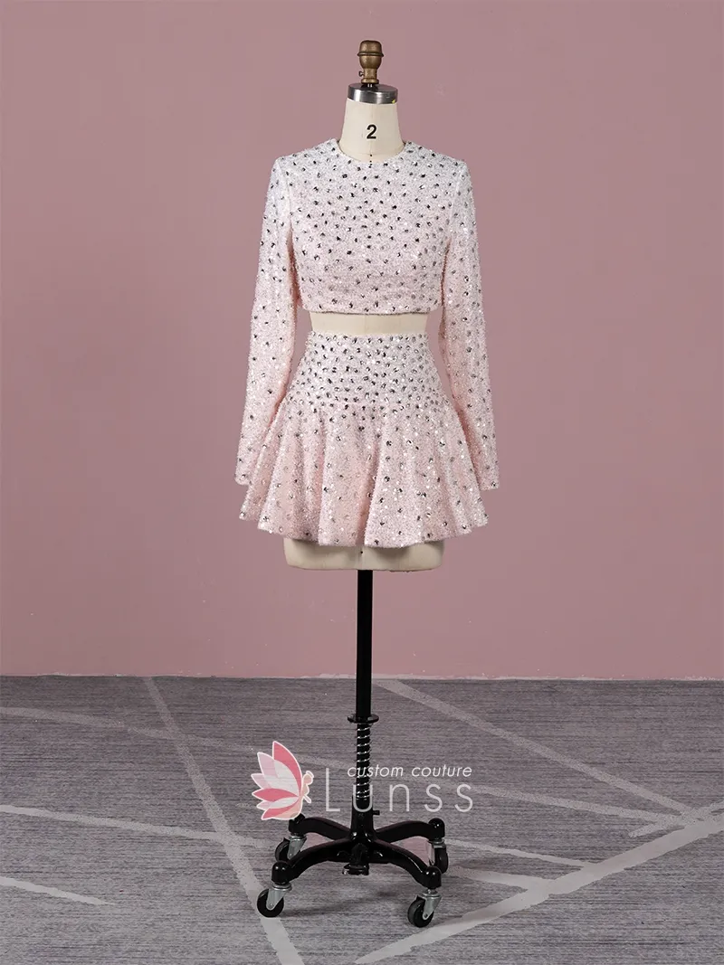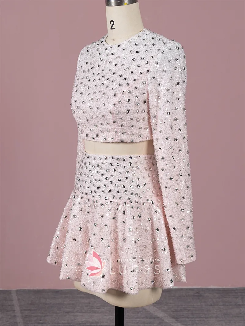 Taylor Swift Pink Crop Top Beaded Two-piece Dress