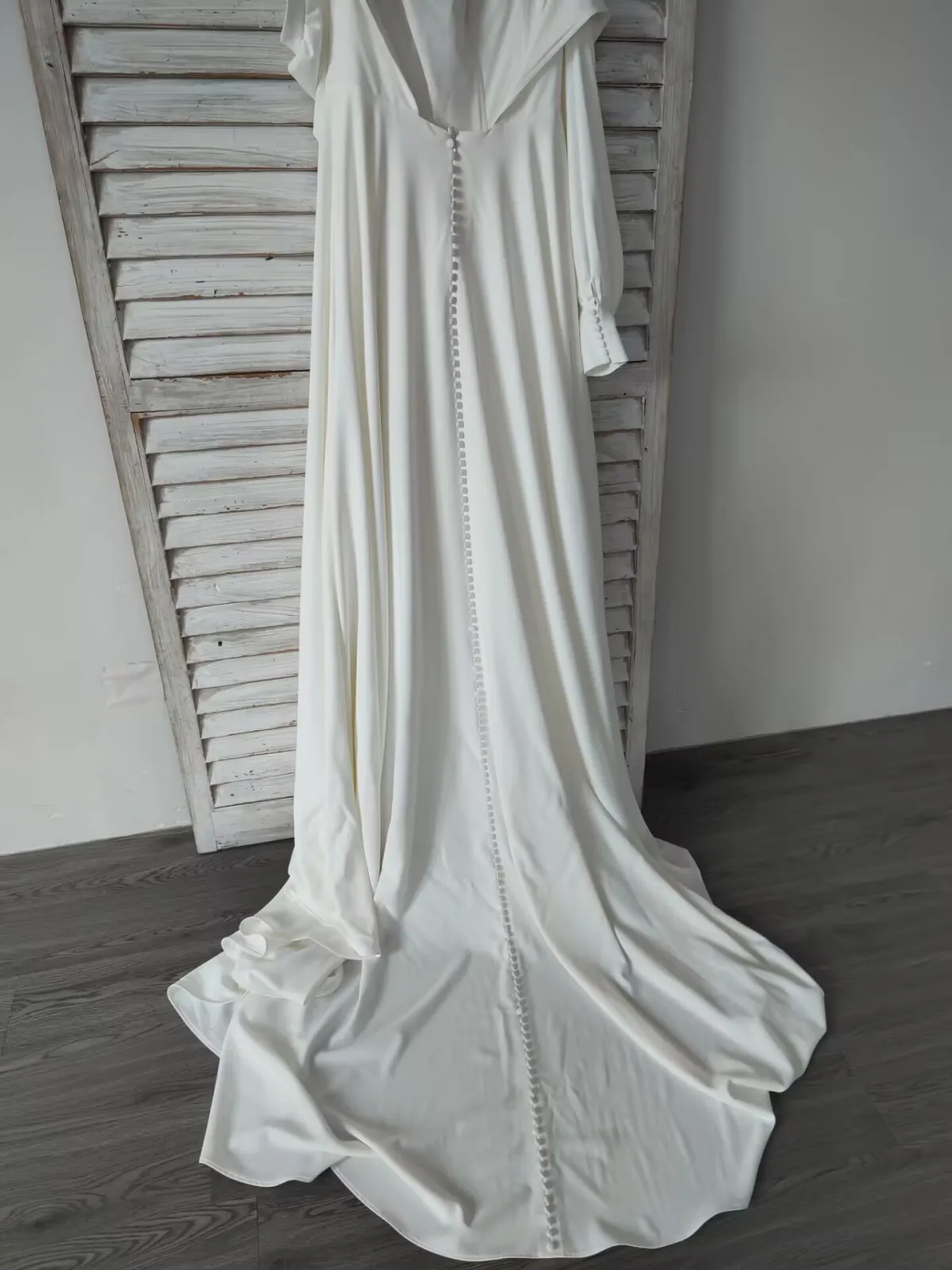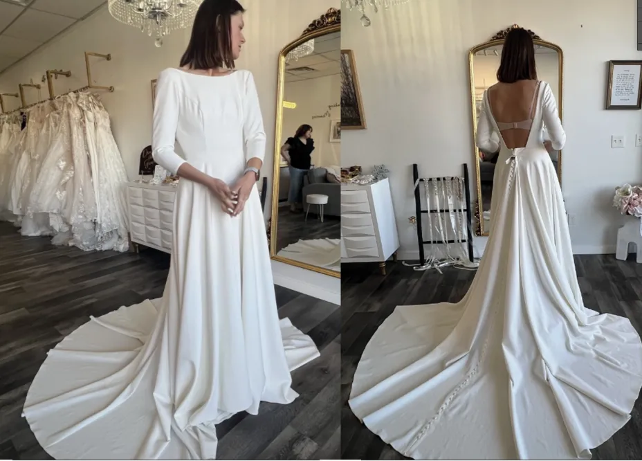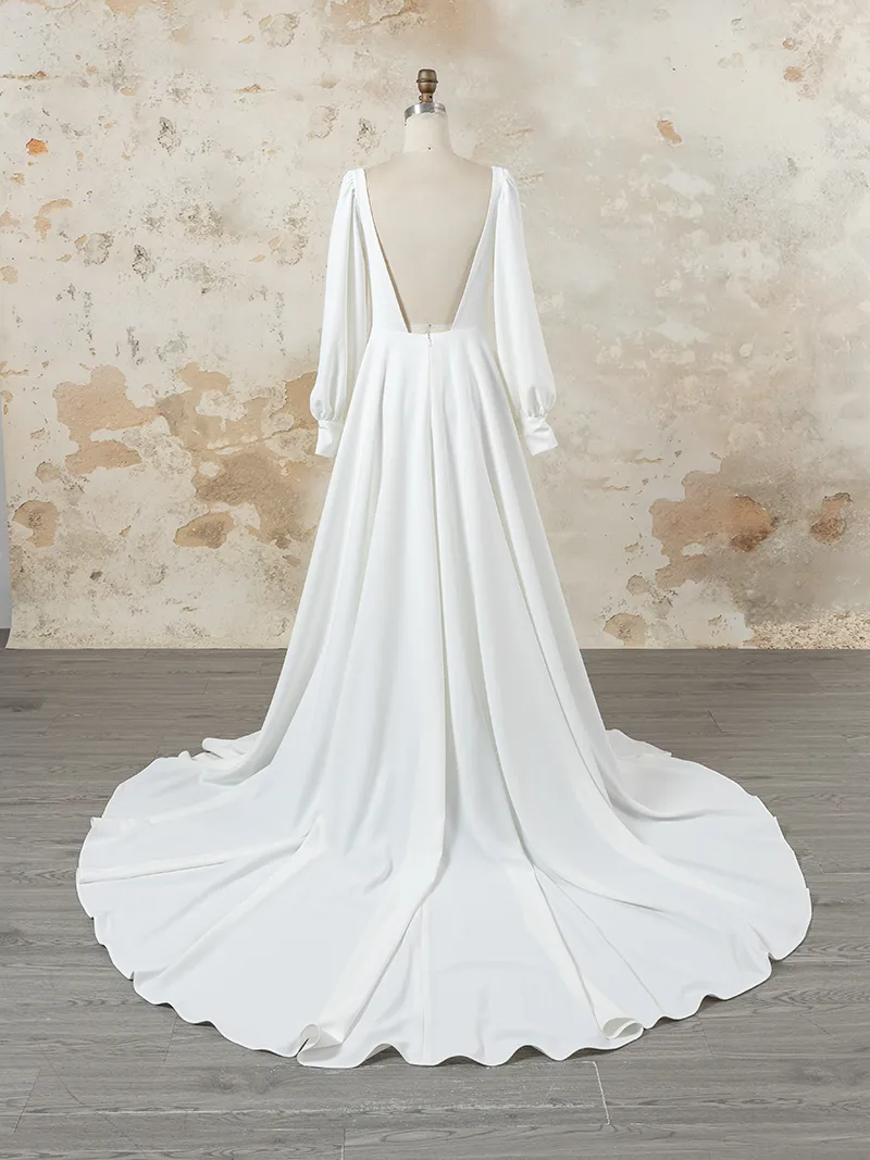 Custom Wedding Dress: Square Neckline and Bishop Sleeves