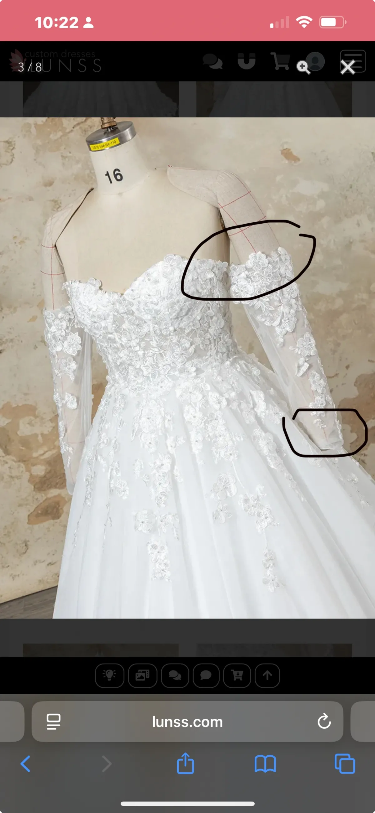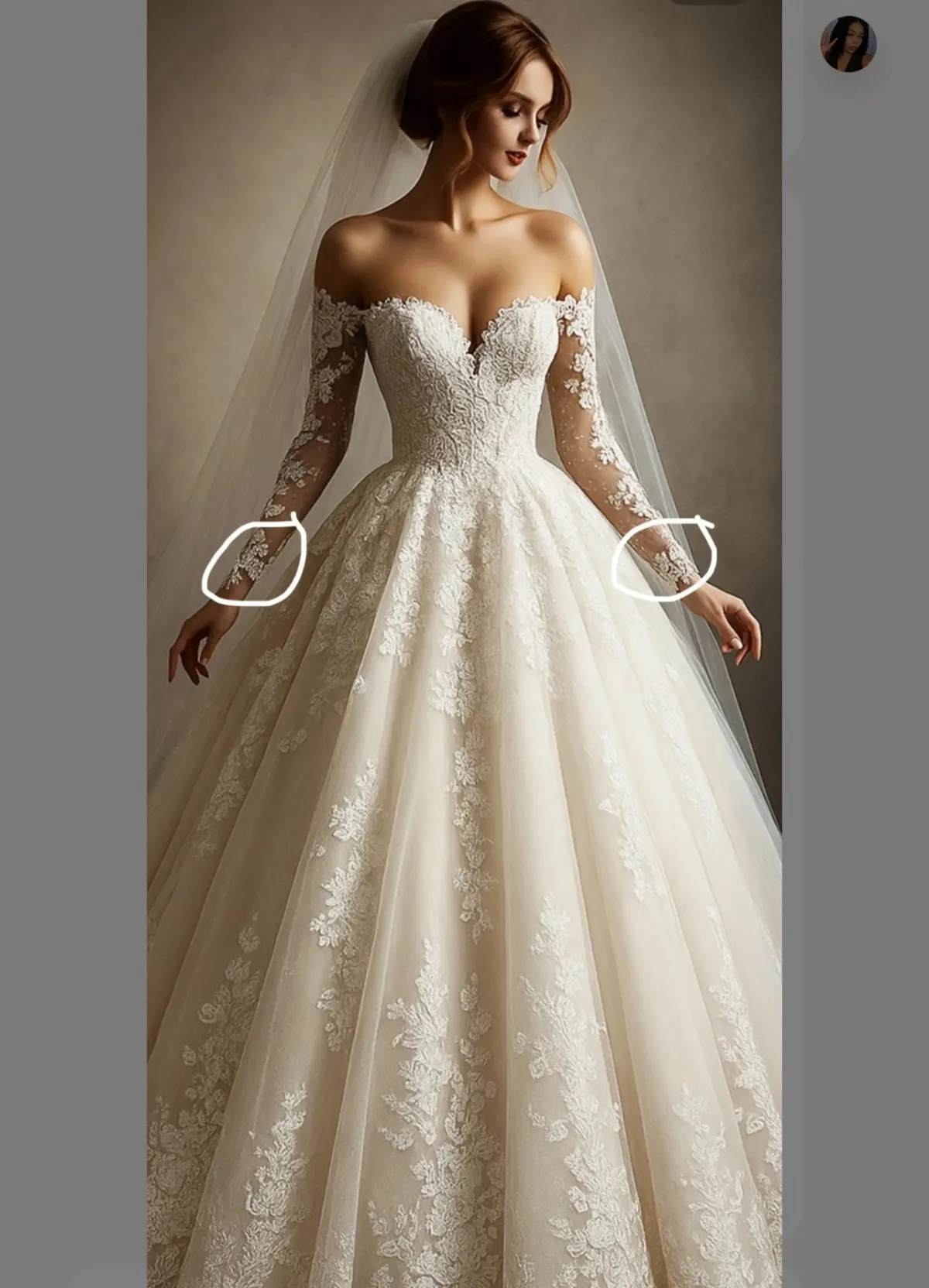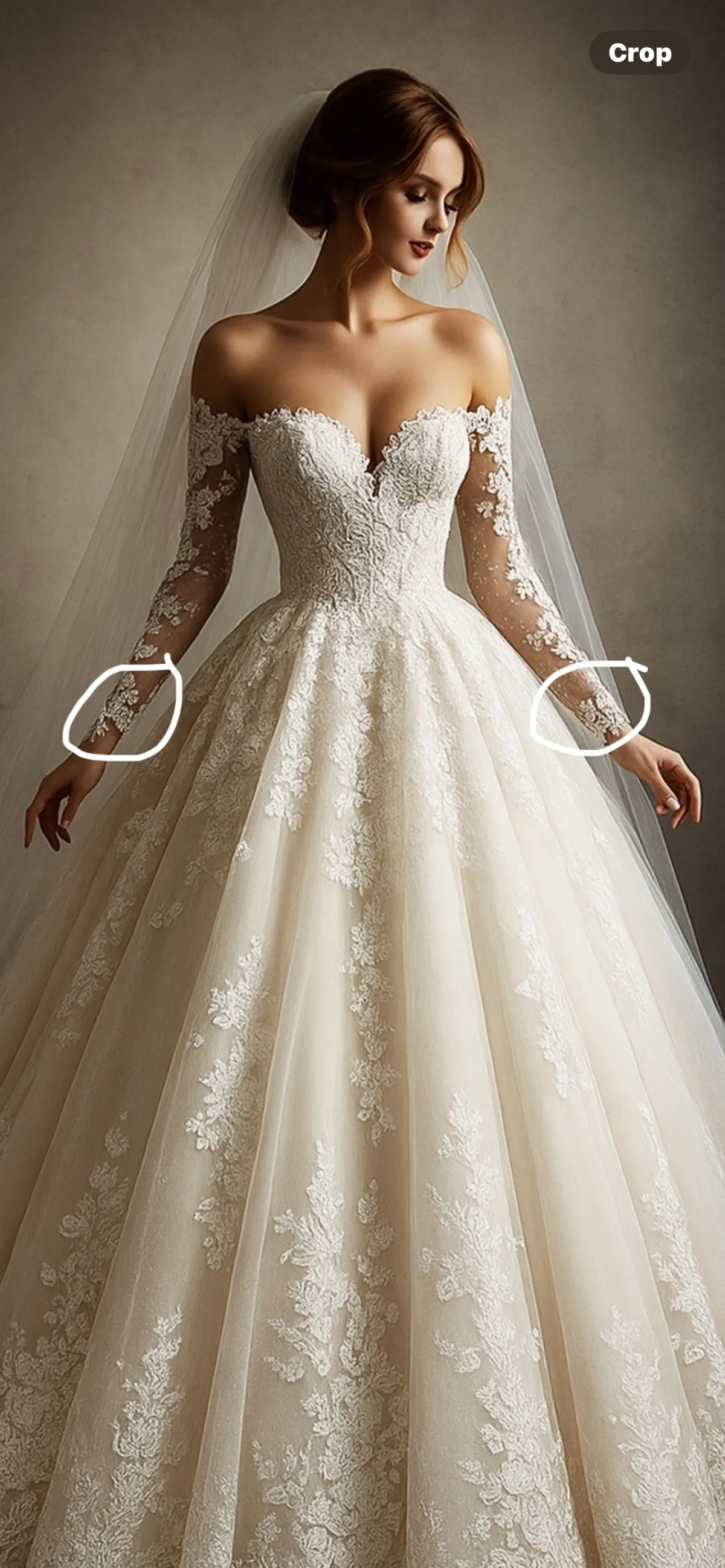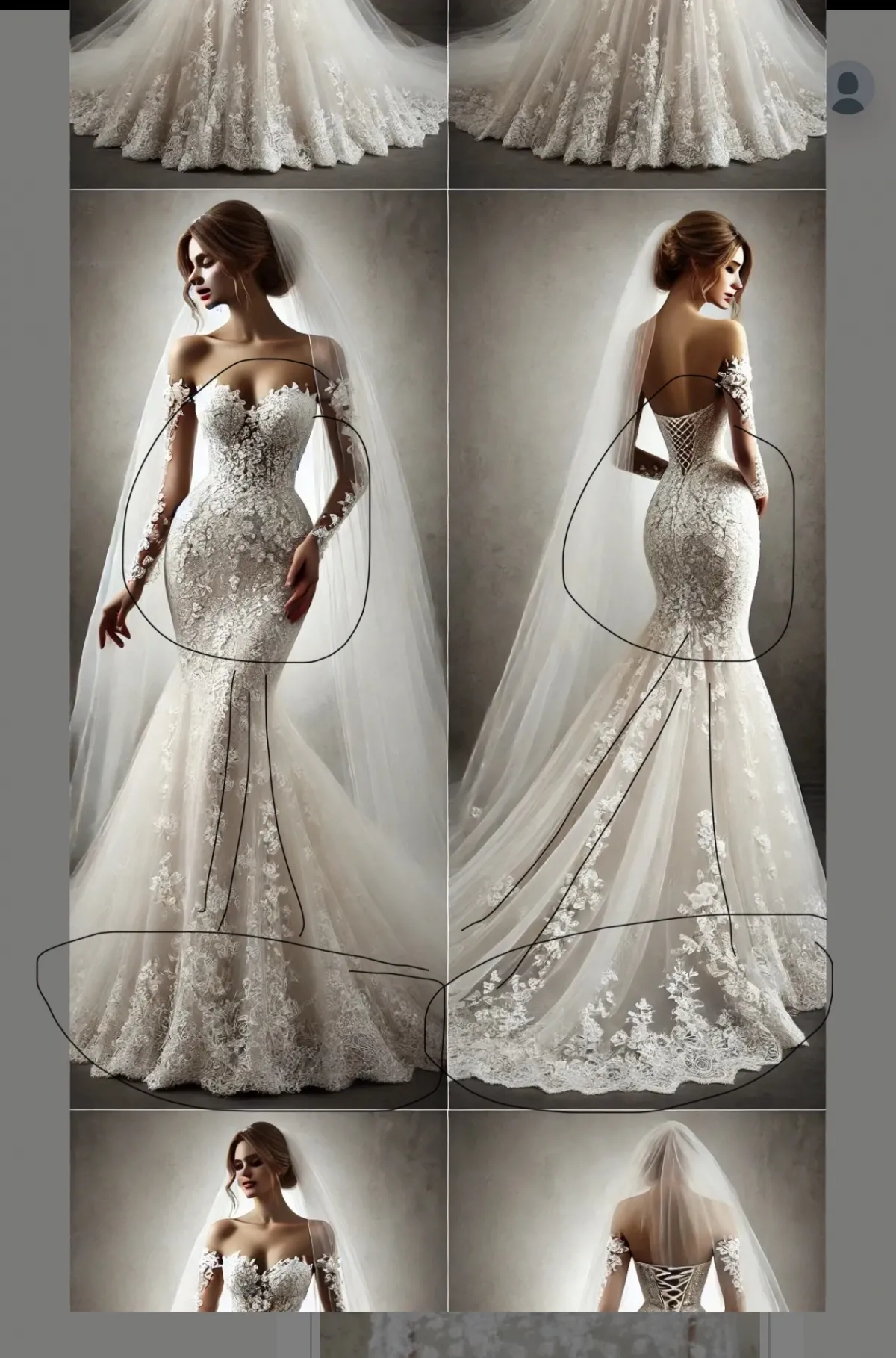 3, “Also, I was hoping to have the 3D lace appliqués on the wrist part of the sleeves as well like the inspo image I sent.”
