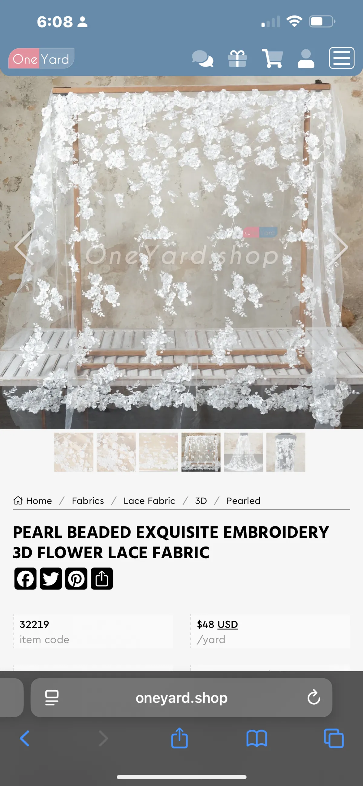 I will check out the links for the beads thank you!! I'm going to need maybe 2 or 3 yards of the lace appliqués I think but I'll wait till I get the dress and try it on so I'm sure. Thanks again for all your help!