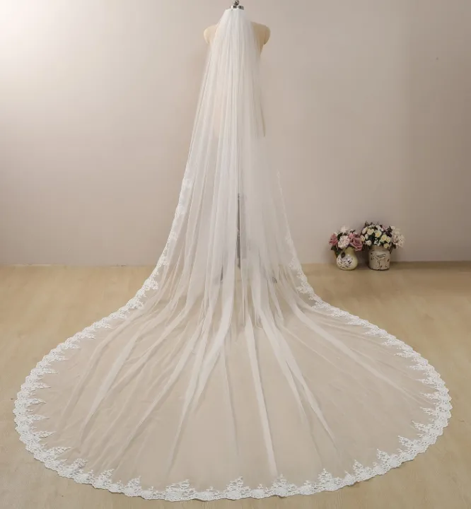 The price of the cathedral-style lace trim veil is around $$$ USD.