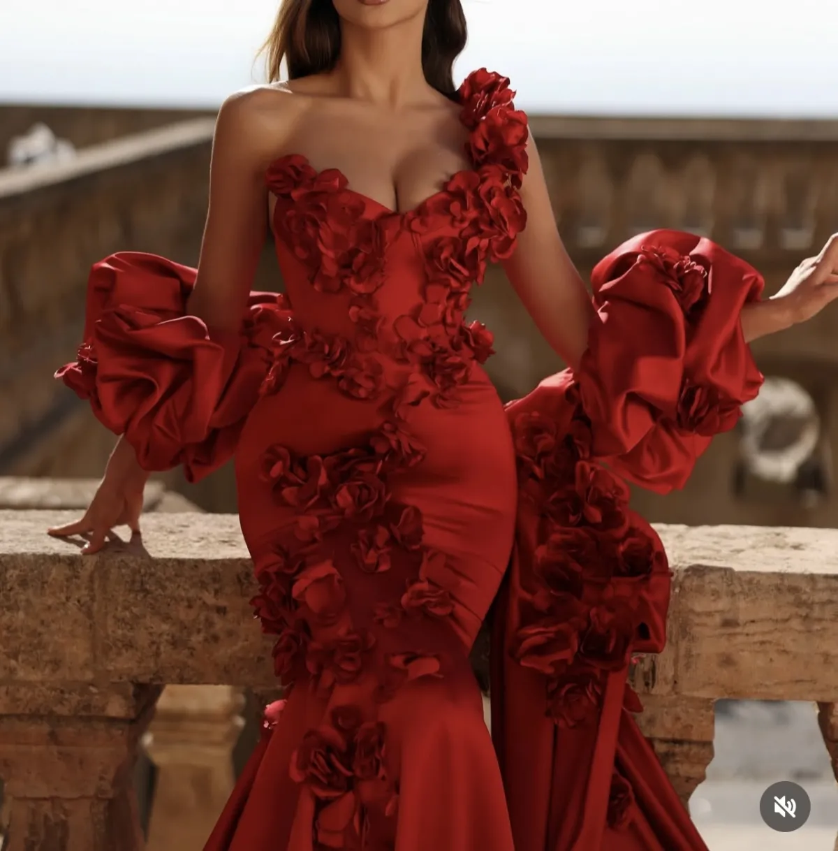 Also, I was wondering if you all have these 3D rose flower or similar? Like on this dress. I tried looking through your fabrics to see but didn't find any. I am going to create a separate request for another dress next year but was wondering about the flowers you have if a dress with the 3D like this was possible?