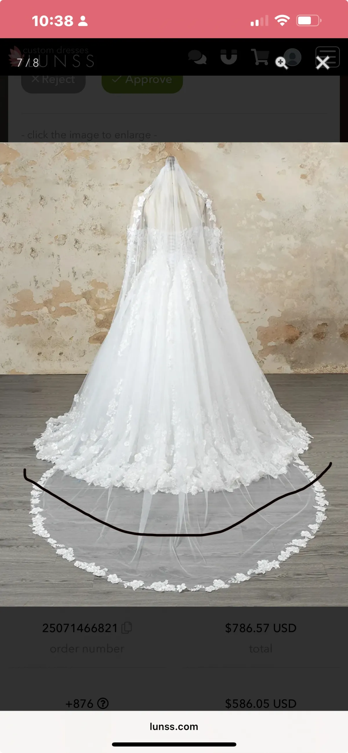 If it's not to much of a bother for the seamstress to add more to the veil I would appreciate it. I think the dress is beautiful as is only the veil I wanted more added to close that gap between. I know this has been a long process and I don't mean to be difficult. I truly appreciate it.