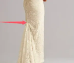 If possible, I would love detachable puff sleeves (ideally attached with snap buttons for convenience). The back of the dress should have a lace-up closure, and along the skirt and train, I would like a row of decorative buttons.
