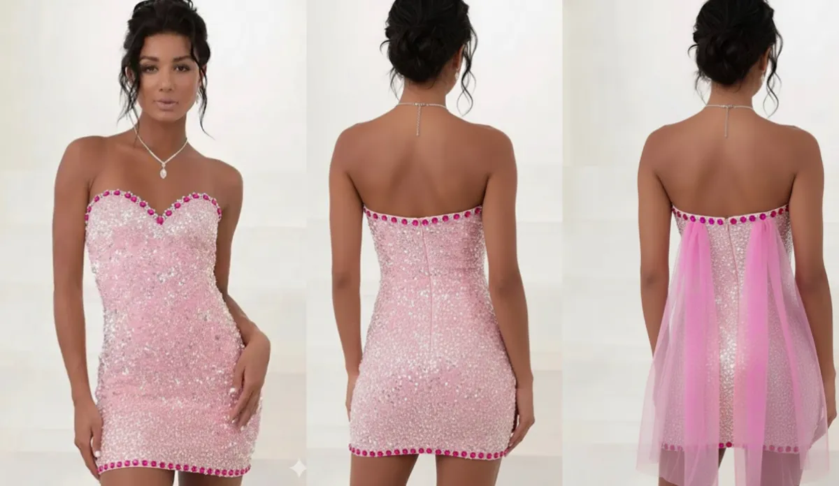 Custom Rhinestone Sequin Cape Hot Pink Birthday Dress
