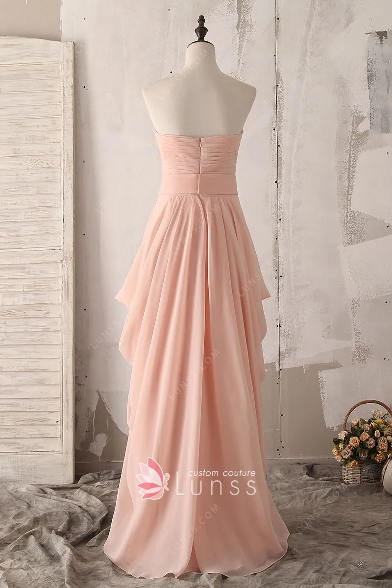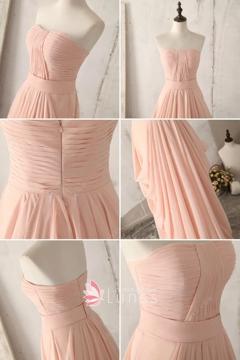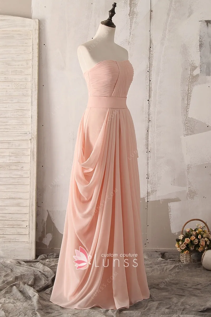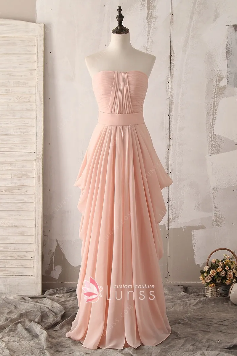 Draped Pink Chiffon Strapless Long Bridesmaid Dress (1F115)