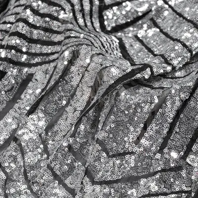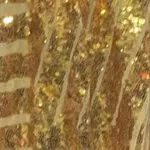 Glamorous and vintage, this sparkly gold striped sequin anniversary and prom formal dress features long sleeves and crew neckline with open back and short train.