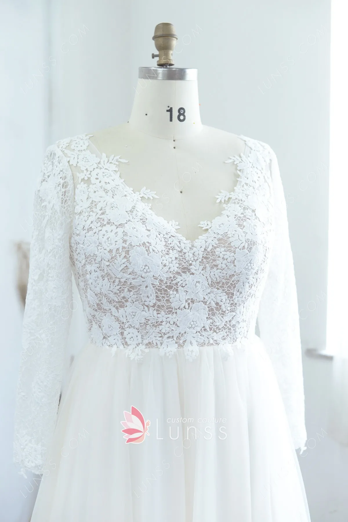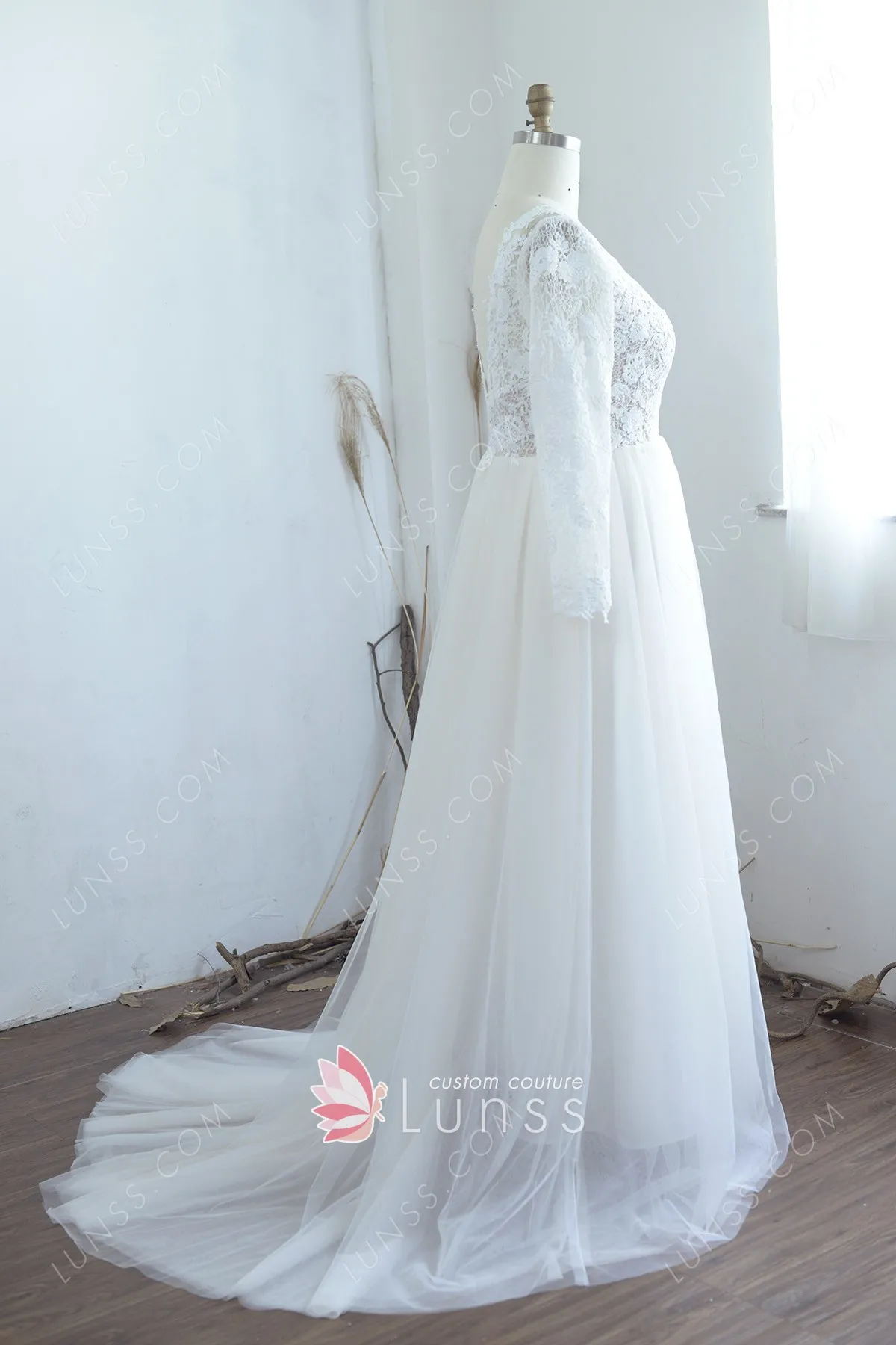 Lightweight Lace & Tulle Long Sleeves Wedding Dress (2T000)