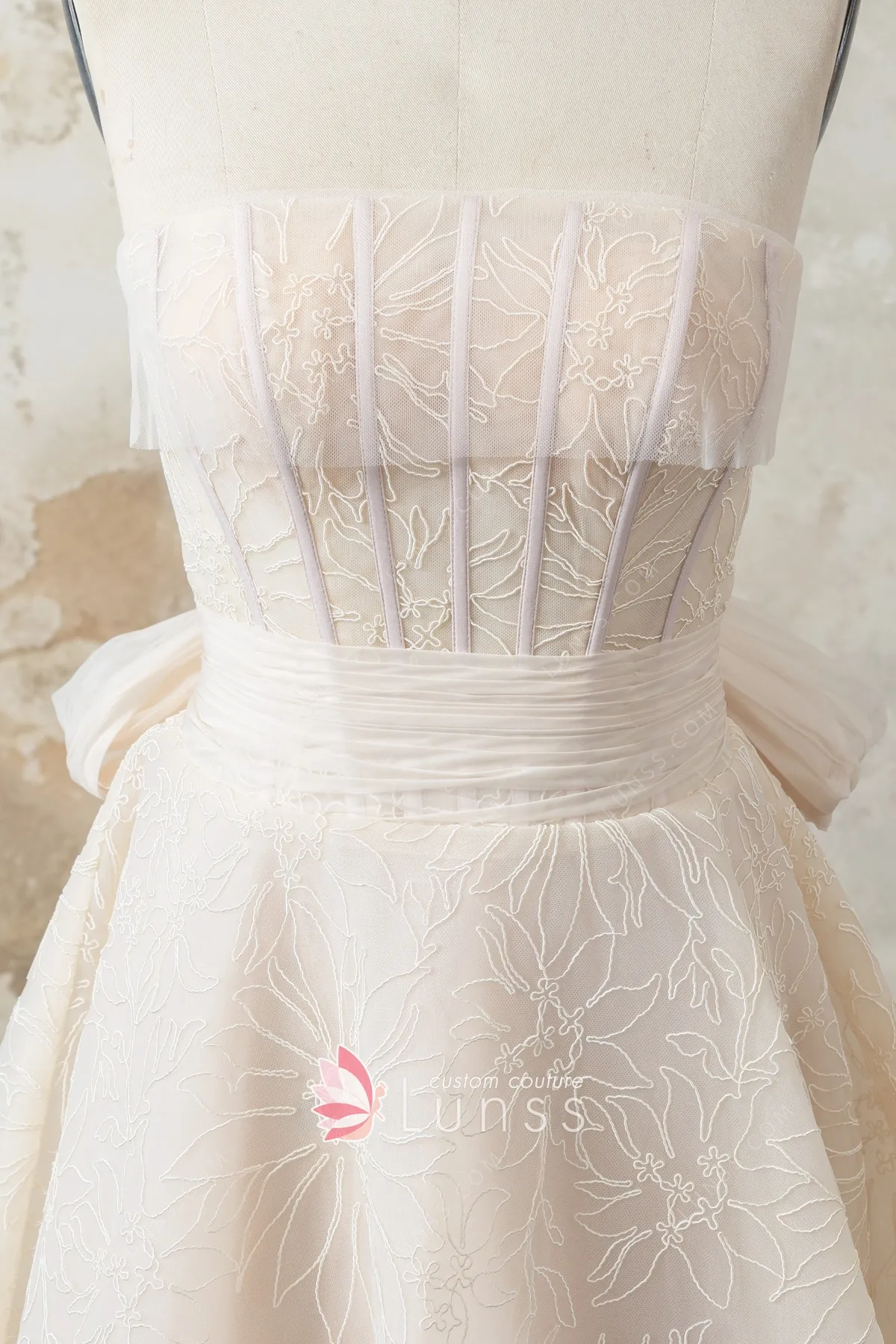 Nude Lace Strapless Corset Wedding Dress with Bow Sash (2X347)