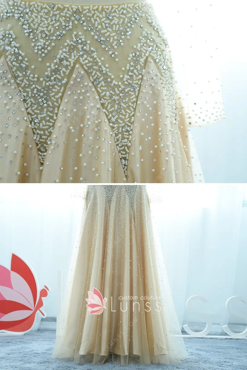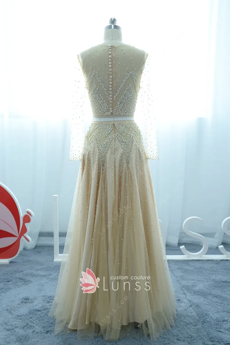 Luxury Pearled Beaded Champagne Two-piece Celebrity Dress (1X043)