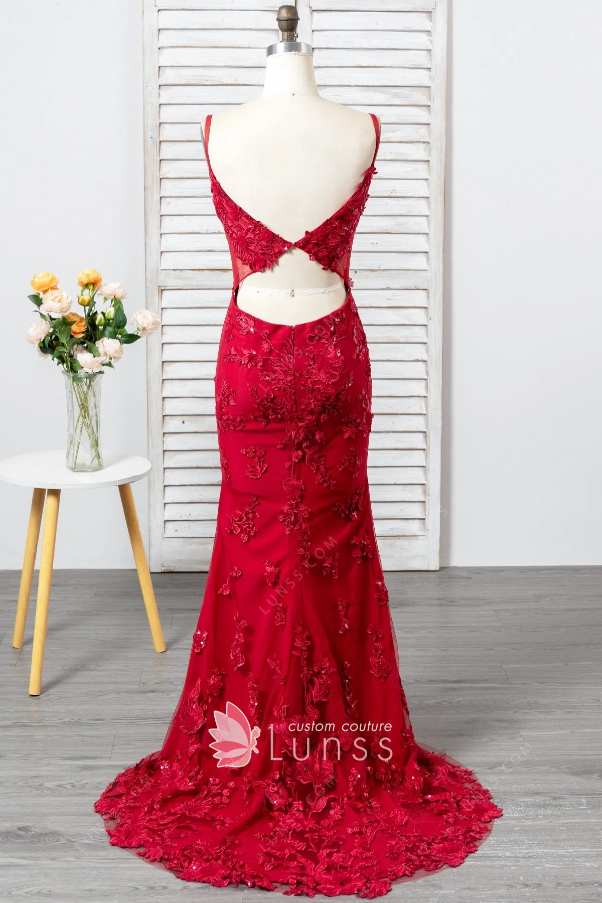 Ruby Floral Lace Applique Mermaid Open Back Evening Gown (1Y477)