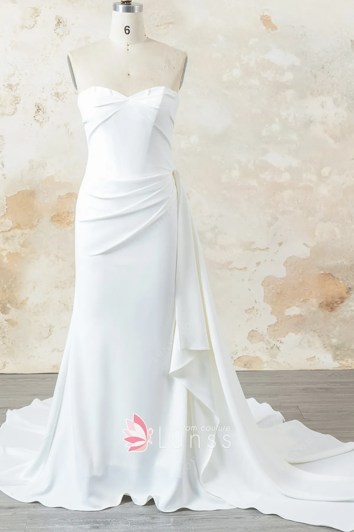 Modern Strapless Side-draped Crepe Mermaid Wedding Dress (2X351)